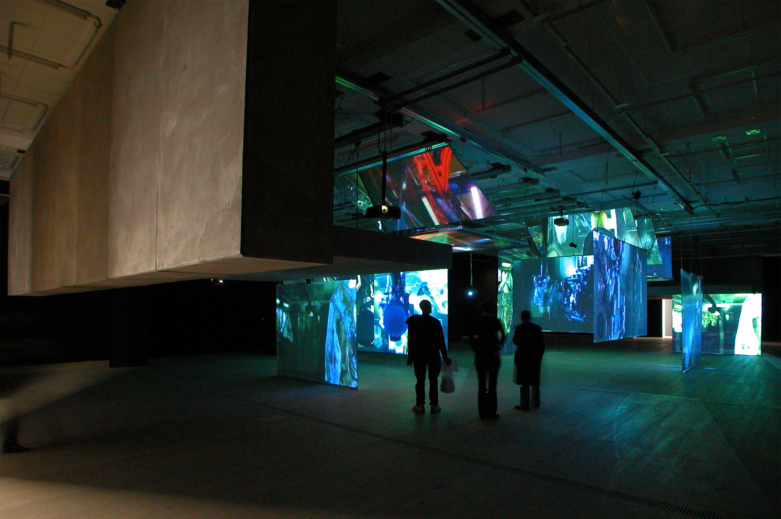 13 x screen channel Video Installation, 16mm transfer, colour sound, 13 x projection screens, 3 x mirrors ,13 projectors and mixed media